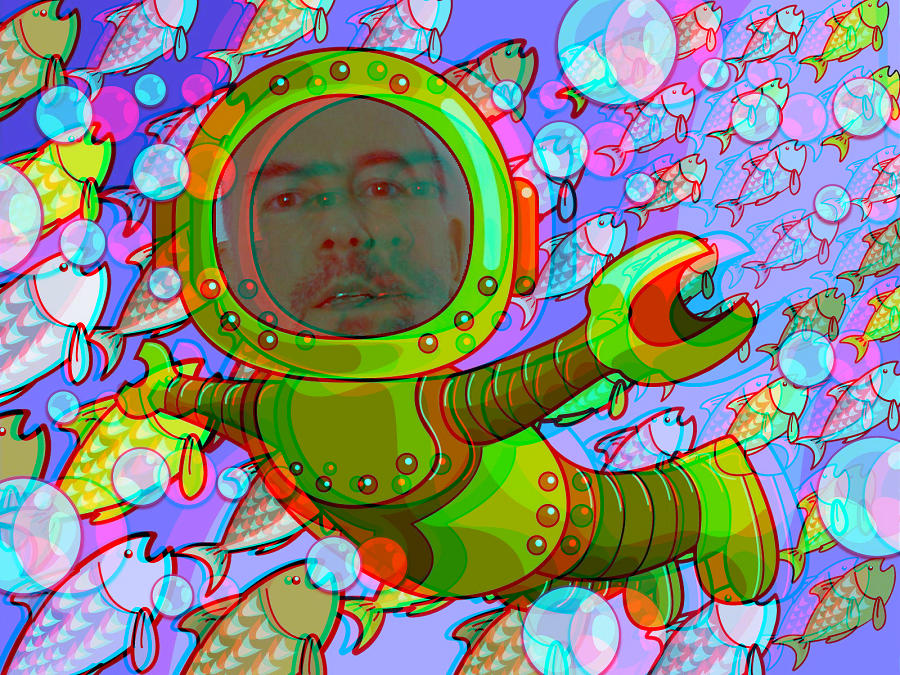 Exemple d'inscrustation proposée à la prise de vue par le Vtech Kidizoom 3D (Oups ! Je crois que je suis en train de perdre mon bras gauche !!!)